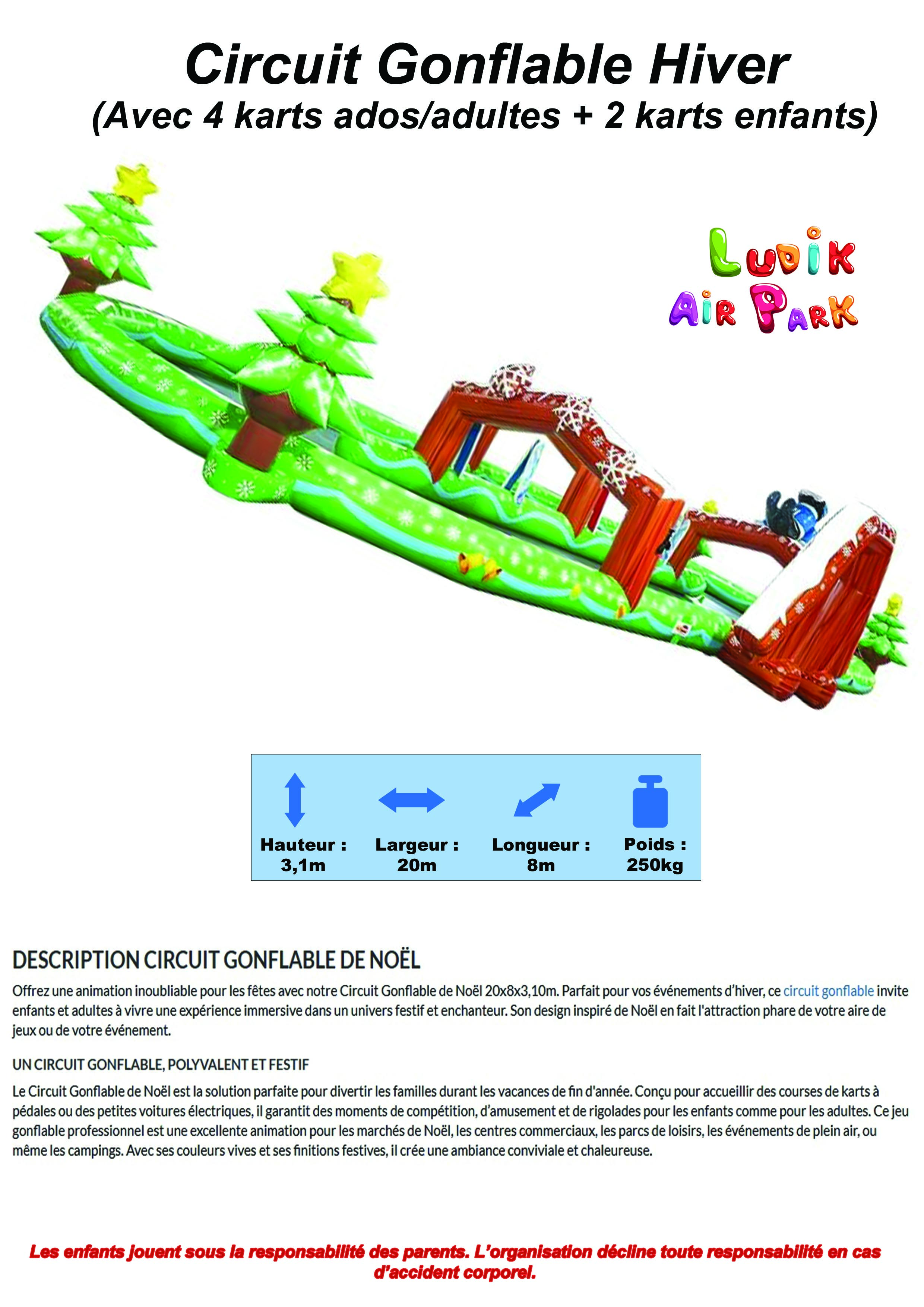 ![]() | CIRCUIT GONFLABLE HIVER (4 karts ados/adultes + 2 karts enfants) | 490€ | 600€ | Nouveauté 2026 | ![]() |